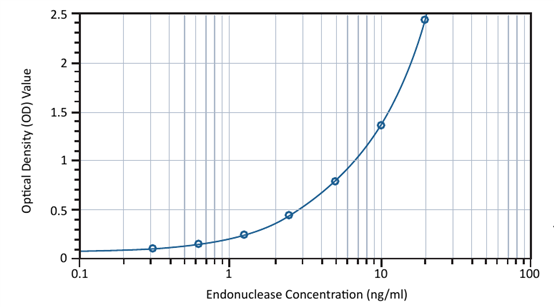 Cygnus EndonucleaseGTP ELISA試劑盒中的抗體是對來自粘質沙雷氏菌(Serratia marcescens)并通過基因工程改造的核酸內切酶免疫親和純化得到的。該試劑盒檢測限約為0.06 ng/ml,是一種靈敏、特異的檢測內切酶殘留的方法,適用于純化工藝開發、工藝監控、日常質量控制以及產品放行測試中。該試劑盒操作方法簡便,主要原理是含有核酸內切酶的樣品同時與HRP標記的anti-endonuclease檢測抗體和96孔板中包被的anti-endonuclease捕獲抗體發生免疫反應結合。EndonucleaseGTP ELISA試劑盒中包含了用于評估核酸內切酶殘留的所有組分,以及一套校準的核酸內切酶標準品。