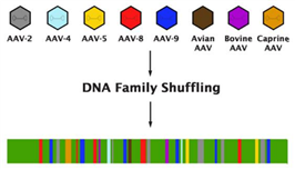 AAV共有12個血清型,其中AAV1-6是從人類組織中分離獲得,并且具有明確的的抗體反應性,是目前常用的經典AAV載體。盡管不同血清型AAV都具有正二十面體結構,但其衣殼蛋白在序列與空間構象上的多樣性,使得AAV與不同細胞表面受體親和力及組織嗜性存在顯著差異。在感染嗜性方面,AAV-2的感染譜較廣應用較多,AAV-1在骨骼肌中的轉導效率較高,AAV-3易于轉導巨核細胞,AAV-5和AAV-6感染呼吸道上皮細胞的優勢較為顯著。因此,根據AAV不同血清型在組織感染性的相對特異性,可以用于在針對不同靶向組織的基因治療中尋求最佳的AAV載體類型與組合。除了常見的六個血清型AAV之外,Cell Biolabs還提供兩種重組型AAV包裝質粒即AAV-DJ與AAV-DJ-8,如下圖所示,這兩種AAV的Rep-Cap基因是由多個野生型AAV的結構基因重組而來,與其他野生型相比,AAV-DJ在體外細胞轉導效率更高,AAV-DJ-8則更適用于體內感染實驗。