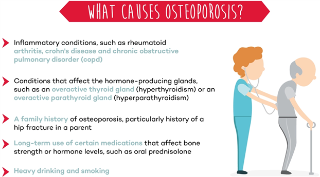 骨質疏松癥隨著時間的推移而發生,并且是衰老過程中許多令人不快的特征之一。作為正常衰老過程的一部分,骨骼會變得更薄,骨細胞的重吸收速度比新骨的形成要快。重吸收與骨礦物質、質量和結構的損失有關。骨骼變弱,骨質疏松和骨折的風險增加。一般情況下,人們在30歲左右骨密度會達到峰值。