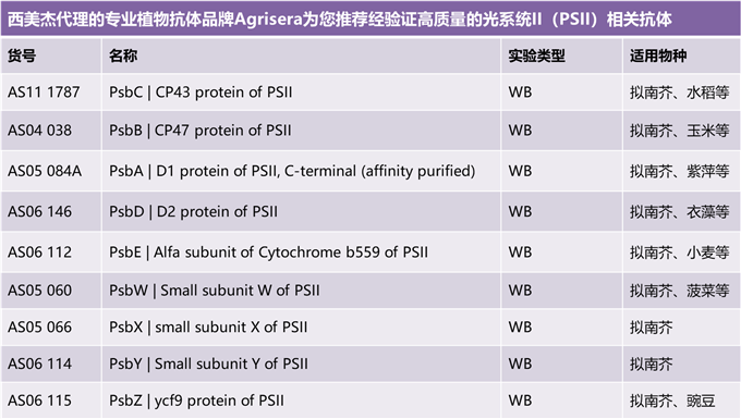 為滿足廣大光合作用研究方向客戶的需求,西美杰聯合專業抗體品牌Agrisera推出光系統PSI和PSII相關抗體促銷活動!活動內容如下: