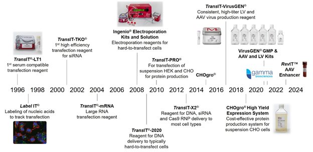 ? ? ? ?美國Mirus公司成立于1995年,是世界上很早開發(fā)高效、低毒轉(zhuǎn)染試劑的公司,同時(shí)也是該類試劑的主要供應(yīng)商之一。其產(chǎn)品線涵蓋化學(xué)轉(zhuǎn)染試劑、電轉(zhuǎn)染產(chǎn)品、病毒生產(chǎn)和轉(zhuǎn)導(dǎo)產(chǎn)品,適用于基因功能研究、蛋白生產(chǎn)、病毒載體生產(chǎn)和動(dòng)物模型構(gòu)建等領(lǐng)域。Mirus被公認(rèn)為轉(zhuǎn)染試劑開發(fā)的領(lǐng)跑者,其許多杰出成果獲得世界公認(rèn)與廣大用戶的好評。