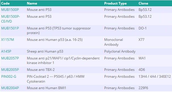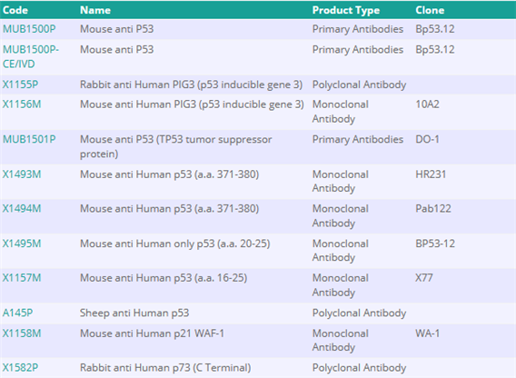 西美杰代理的Nordic-MUbio品牌提供了大量與p53蛋白相關的抗體產品,這些產品在癌癥領域的研究中發揮著重要作用。這些抗體的研究方向涵蓋了細胞周期、癌癥、細胞結構、腫瘤學、細胞凋亡、感染性疾病、CD maker、細胞粘連、酶、細胞外基質和干細胞等多個領域。為了方便客戶進行搜索,小編整理了部分與p53蛋白相關的抗體產品列表: