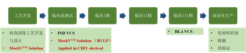 當前,大多數的生物藥企開展除病毒驗證普遍選擇專業的病毒清除驗證服務商,如生物制品檢定研究所,CRO/CMO或布局生物醫藥的三方檢測公司或相關濾器制造商等。一方面,開展除病毒驗證業務需要嚴格的生物安全等級的病毒實驗室,必須按照病原微生物防護水平申請P2備案,另一方面,此工作業務的展開也需要縮小模型儀器設備的采購,專業人員的培訓以及實驗室的日常運營等,涉及到從細胞培養建庫,病毒制備純化及工藝檢測驗證等全流程,會耗費相當大的人力物力財力,給生物藥企帶來了額外的經濟負擔。為了緩解這一問題,Cygnus MockVTM Solution帶來了前沿的技術與解決方案,提供了兩種模擬病毒顆粒(MVM-MVP及RVLP),盡可能的模擬出活病毒的理化性質,使生物藥研究人員在常規的實驗室內,輕松實現早期的工藝開發和工藝表征并對純化工藝步驟完成病毒清除效果預測和數據積累,進一步的在開發階段減輕對于病毒清除驗證服務商的依賴,同時也為藥物盡快上市提供加速度(圖1)。