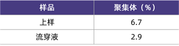 在該應(yīng)用案例中,研究人員使用CHO細(xì)胞表達(dá)IgG型單克隆抗體,料液經(jīng)過Protein A親和層析和陽離子交換層析純化后,在較低的pH和較高的電導(dǎo)率條件下孵育,誘導(dǎo)產(chǎn)生高含量的聚集體,再以流穿模式上樣HCPureTM,收集流穿液和淋洗液,檢測聚集體含量。