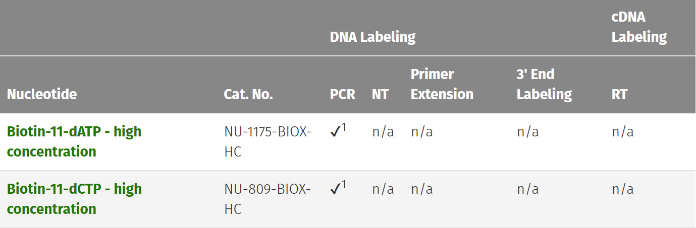 西美杰代理的Jena Bioscience品牌現在能提供用于DNA和RNA非放射標記的濃度為10mM的Cy3-,Cy5- 和濃度為5mM的Biotin- 標記的核苷酸。