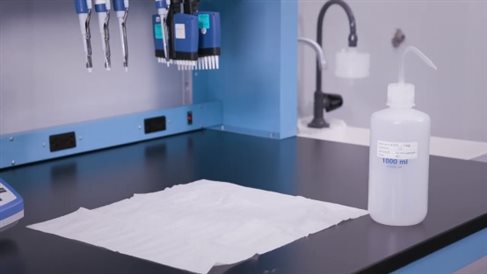 用蒸餾水將20×的濃縮洗滌液稀釋至1×洗滌液裝入洗瓶?jī)?nèi),將吸水紙鋪開(kāi)放在水槽旁邊干凈的工作臺(tái)上。
