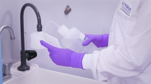 因此,Cygnus專家建議在使用Cygnus ELISA試劑盒時(shí)盡量采用手動(dòng)洗板的方法。該方法簡(jiǎn)便易學(xué),無(wú)需任何特殊設(shè)備。只要準(zhǔn)備一些低纖維吸水紙和一個(gè)洗瓶就可輕松操作,需要注意的是洗瓶的出水口要修剪成大開(kāi)口斜面以確保洗液的充分流動(dòng)與合適的沖洗力度。