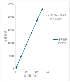 圖3. 舟帆生物ZF-LC-0001流動相線性及進樣量與總峰面積數據