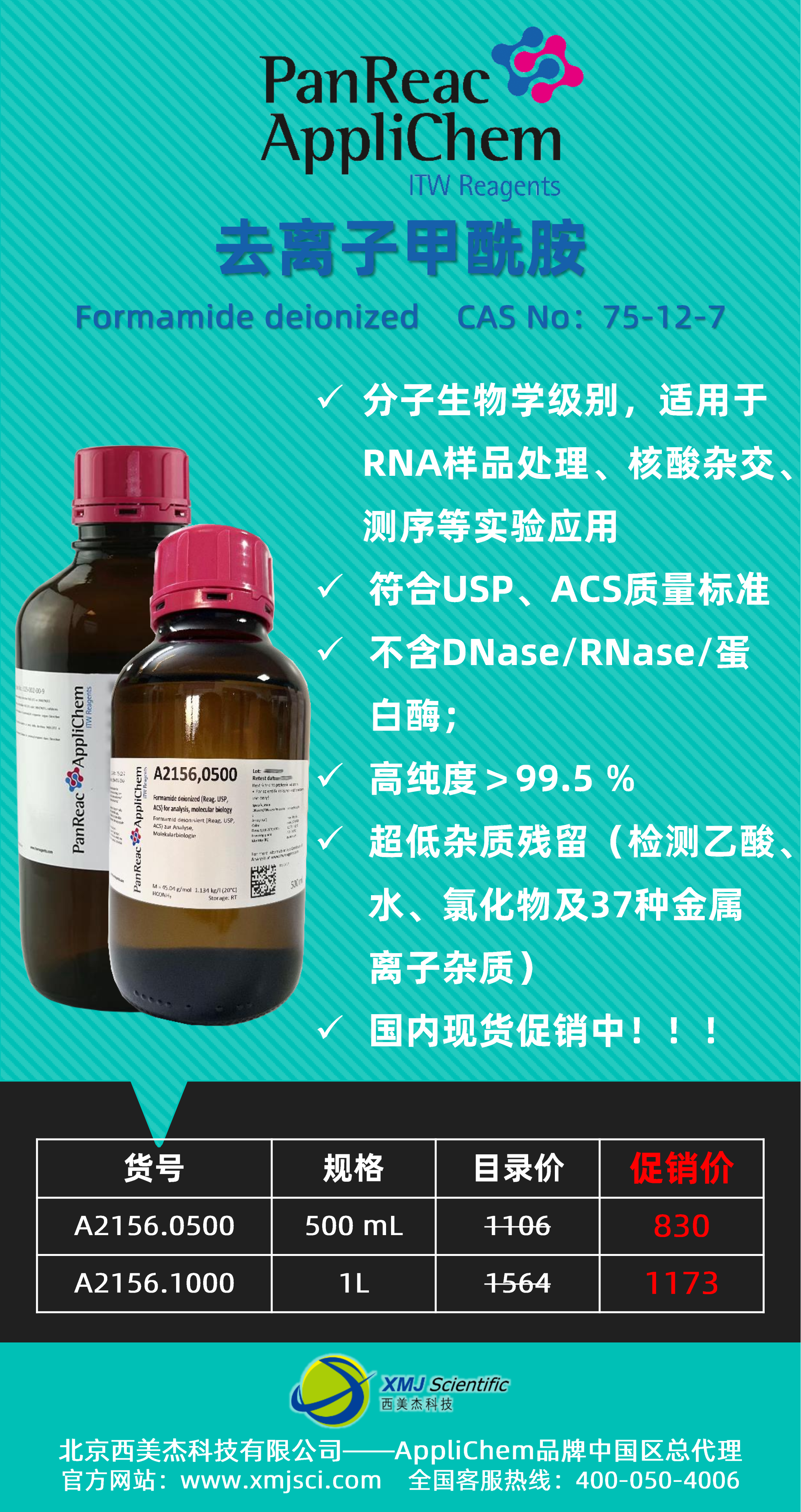 Applichem 分子生物學級去離子甲酰(A2156) 特價促銷