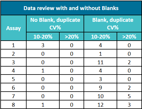 表2. 經過空白對照校正后的CV%與未校正數據的CV%值對比