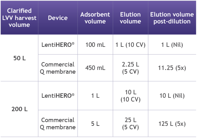 篩選裝置上樣量20ml,測得填料載量為3E+8 IU/ml。