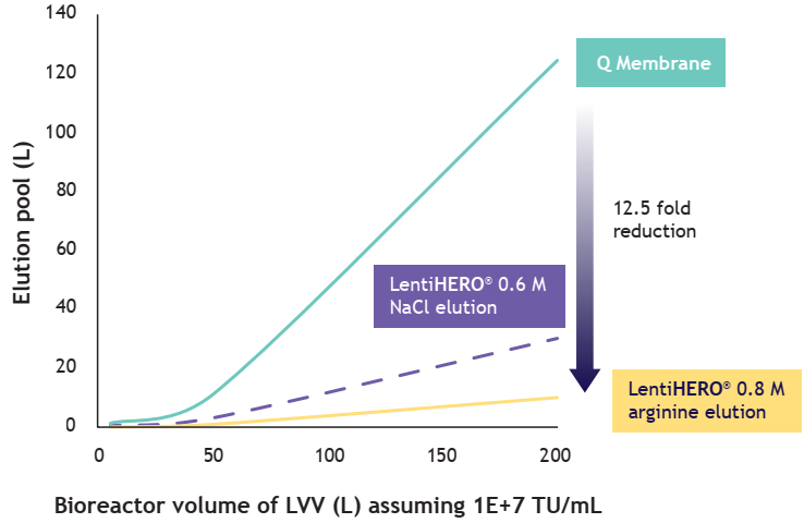 用0.8M精氨酸洗脫,HSV回收率可達(dá)到69%,LentiHERO®載量可達(dá)1.4E+8 IU/ml,同時(shí)實(shí)現(xiàn)高效的雜質(zhì)去除。