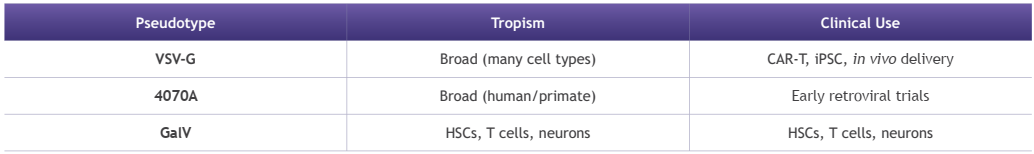 重組慢病毒可以通過不同的包膜蛋白來提高轉(zhuǎn)導(dǎo)效率和改變特異性,從而直接影響下游純化策略。